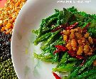 材料:水豆豉(三大匙),茼蒿菜,干辣椒(兩,三個),大蒜(兩,三瓣),豬油。 制作過程: 1,茼蒿菜去老梗,洗凈備用。 2,干辣椒切段,大蒜拍松。 3,植物油,豬油各一半入鍋燒熱。 4,加入…